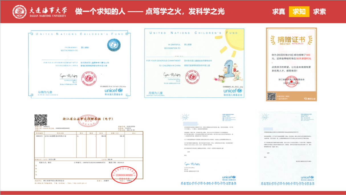 面对疫情,他始终冲在前线。核酸检测、清洗消杀、值班站岗,处处可见他的身影;积极响应学校号召,为抗疫工作者的子女进行无偿学业辅导,带着海大精神将自己的光和热照到更远的地方。他心怀感恩,将情商奖学金全额捐给中队并积极参与新华爱心教育基金会和联合国儿童基金会的月捐活动,尽自己的绵薄之力,做力所能及的公益。