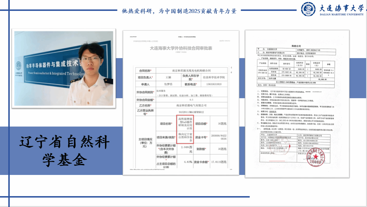 2023年暑假,作为唯一的211院校学生,他入选清华大学联合培养计划。导师曲小波教授为欧洲科学院院士(Academia Europaea),过去五年主持欧盟、瑞典科技部、瑞典基金委等重大项目,科研经费超过1000万欧元。暑假期间赴清华大学参与科研,主要进行自动驾驶相关研究,目前正在参与宁波港车辆自动调度项目的研究。现有一篇SCI一作论文在写,一篇ESCI二作论文在投。2022年11月,他加入MK体育(中国)国际平台半导体与集成电路实验室,导师为王颖教授(百千万人才工程国家级人选)。参与辽宁省自然科学基金项目“高性能增强型GaN器件研制及应用示范”,并主持其中的基于氮化镓器件的水下无线充电设备的研究工作。现有一篇SCI(Q2)二作论文大修,一篇EI一作论文在写,一篇会议二作论文在修。另外,主持与参与省A级大创各一项,一项专利与一项软件著作权获得授权,一项专利在申。