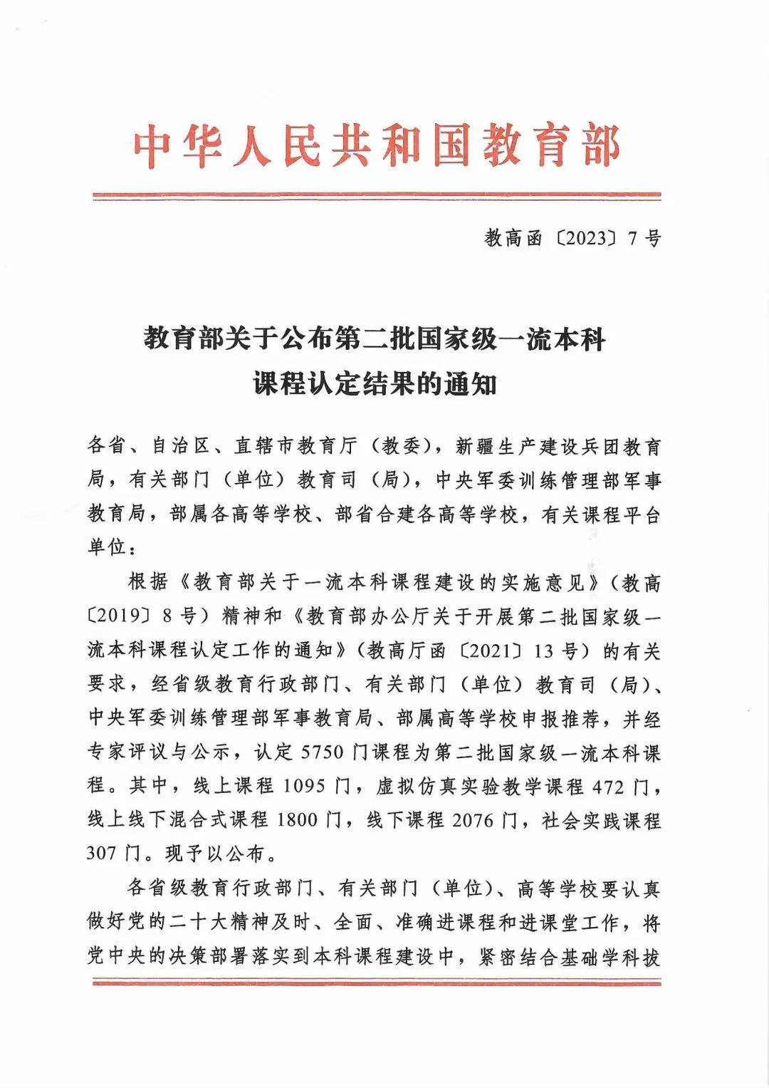 附:MK体育(中国)国际平台国家级一流本科课程完整名单