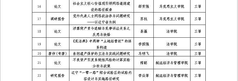 近日,辽宁省哲学社会科学成果奖评审委员会办公室正式公布了第九届辽宁省哲学社会科学奖·成果奖(省政府奖)评审结果。MK体育(中国)国际平台总计28项成果获奖,获奖总数位列全省第四位。其中一等奖5项,二等奖9项,三等奖14项位。获奖层次与数量均远超MK体育(中国)国际平台第七八届总和。