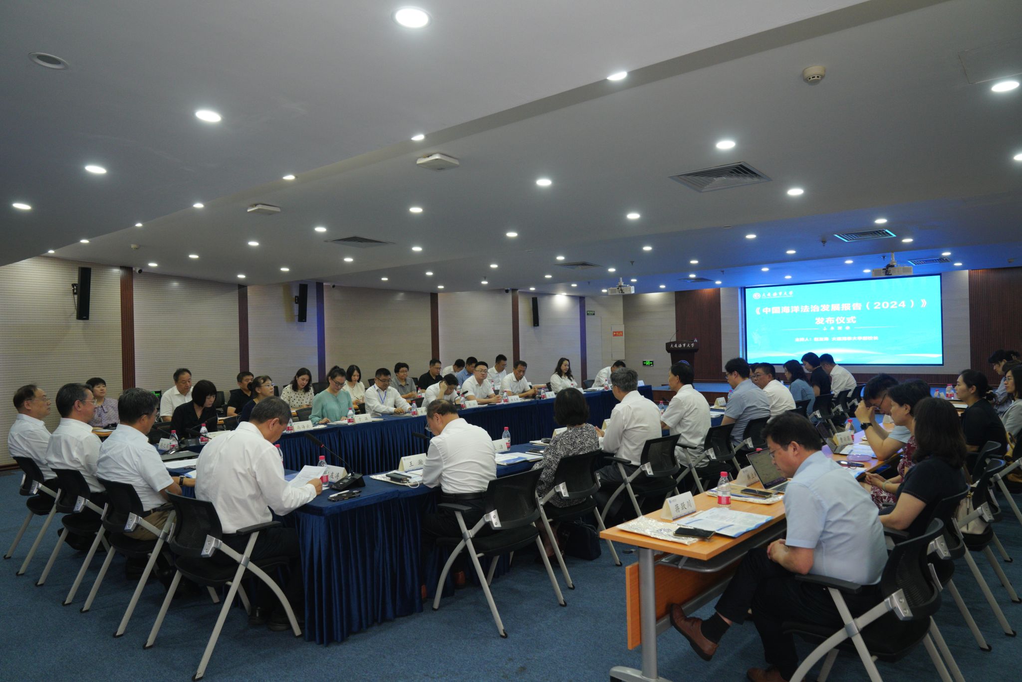 来自交通运输部,自然资源部,最高人民法院,辽宁省委,大连市委、市人大常委会、市政府,中国社科院,中国海洋法学会、中国海商法协会,南京大学等单位领导和专家,以及学校智库专家和报告编写组成员代表等50余人出席活动。