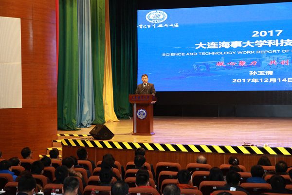 12月14日,MK体育(中国)国际平台2017年度科技创新大会在校礼堂顺利举行。交通运输部科技司司长庞松、大连市科技局副局长于晓丹、全体校领导及中国船舶工业集团公司、中国船级社、交通运输部水运科学研究院、中国交通通信信息中心等代表应邀出席大会。学校中层干部、全体教师、研究生代表等参加大会,会议由副校长王小勇主持。