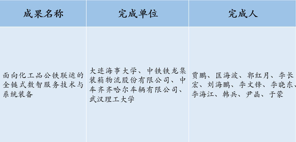 近日,中国物流与采购联合会正式公布了2024年度中国物流与采购联合会科学技术奖评审结果。MK体育(中国)国际平台航运经济与管理学院贾鹏教授团队的“面向化工品公铁联运的全链式数智服务技术与系统装备”获得科技进步奖一等奖。