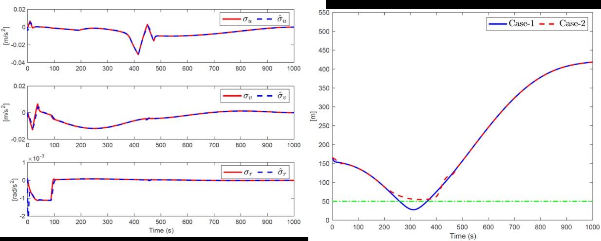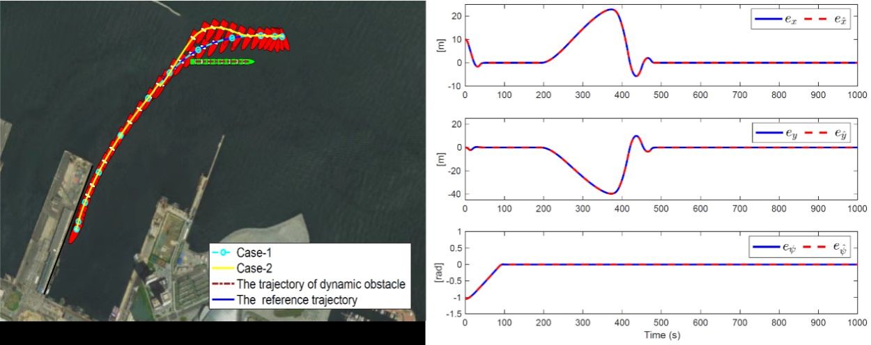 创新点如下:第一,与现有基于物理方程或数据统计的船舶运动建模方式不同,将物理方程和历史数据同时融入到船舶运动数字孪生运动建模,构建了数据驱动智能预估器,实现了船舶信息空间和物理空间船舶模型信息的精确状态同步和模型在线演化,为态势推演和平行控制提供了精确的船舶模型信息和风浪流干扰信息。第二,与现有基于代数方程描述的船舶运动控制器不同,提出了基于积分控制障碍函数的安全平行自学习抗干扰轨迹跟踪动态控制律,不仅保证了航行过程中的稳定性和抗扰性,而且保障了船舶在复杂交通场景下航行过程中的安全性。综上,与现有船舶运动控制理论不同,该文提出的新型实时运动数字孪生建模和平行控制策略为智能船舶运动控制提供了新途径,在智能船舶船岸协同、自主航行、自主靠泊、编队航行等作业场景具有重要应用前景,对于新一代绿色、智慧、安全航运系统的构建具有积极意义。