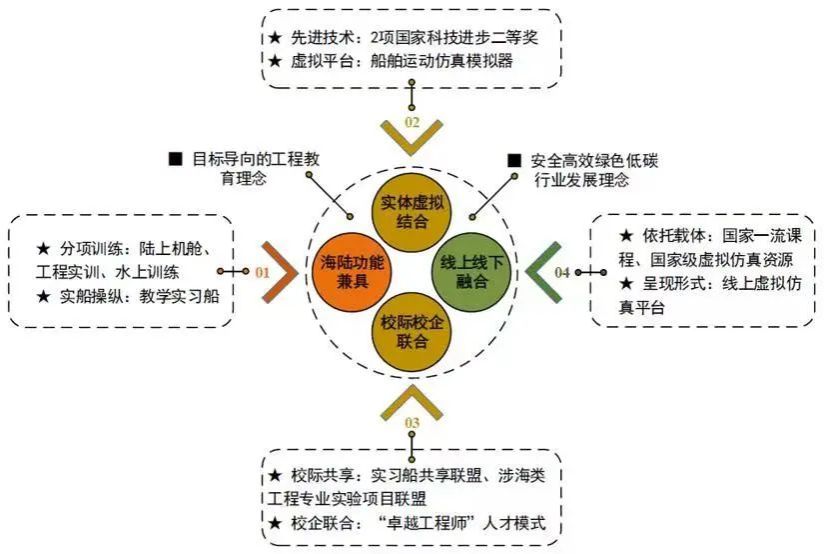 持续开展基于“新工科”理念的教学改革工作,依托教育部新工科研究与实践项目,组建现代海运产业学院,推进校企融合人才培养模式,优化实践教学资源配置,打造海陆功能兼具、虚实手段结合、校际校企资源共享、线上线下融合的“四维一体”航海类专业工程实践教育平台。