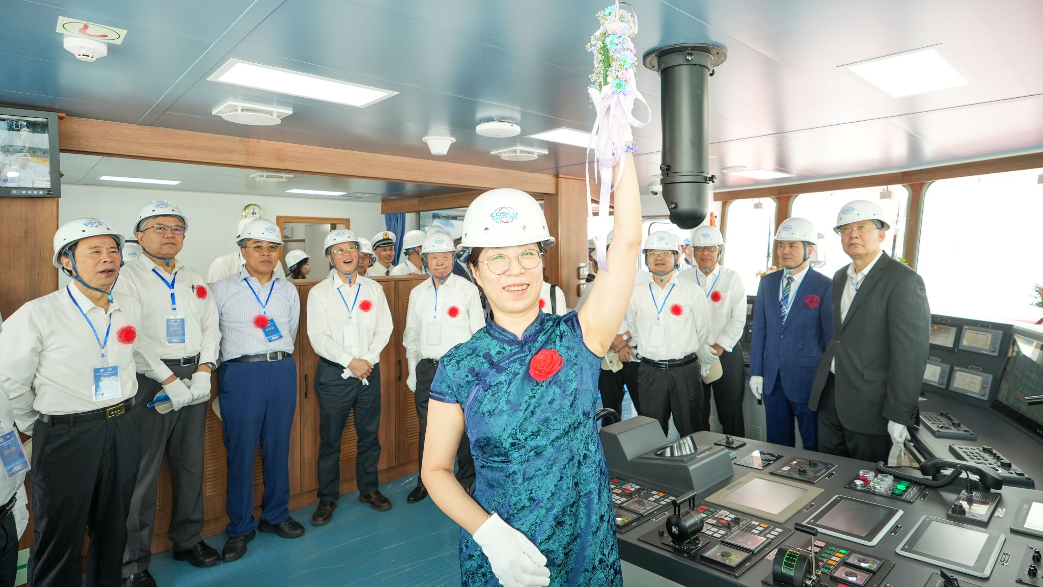 MK体育(中国)国际平台航海学院退休教师董华女士作为新船教母为“新红专”轮命名。